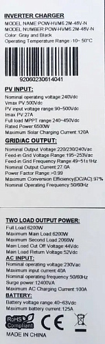 Основные параметры и характеристики инвертора PowMr 6200W 24V POW-HVM6.2M-48V-N